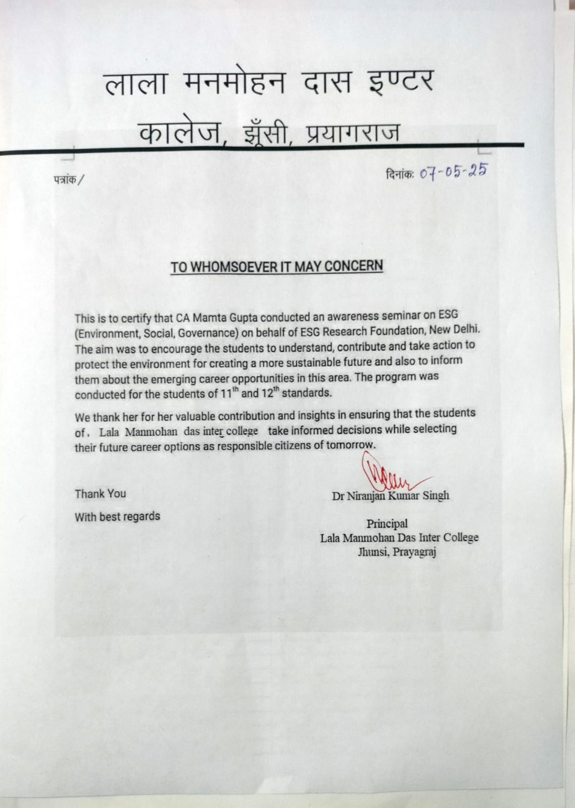 Our ContributionLala Manmohan Das Inter CollegeESG Research Foundation9 months agoposted on May. 08, 2025 at 4:08 pmMay 8, 20250Share tweet Share on FacebookShare on XShare on EmailMoreESG Research FoundationMay 8, 2025previous articleJamuna Christian Junior High Schoolnext articleShri Guru Teg Bahadur Girls Inter Collegethe authorESG Research FoundationLeave a reply You Might Also LikeOur ContributionBrooklyn National Public School Kanakapura4 months agoOur ContributionNational English School4 months agoOur ContributionSree Siddaganga English Medium School7 months agoOur ContributionAPS Public School7 months ago